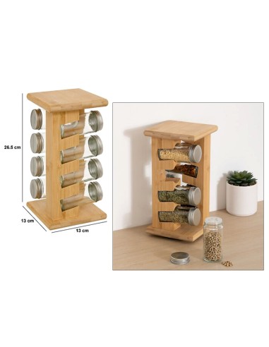 Organizza le tue spezie con eleganza e praticità grazie al portaspezie 5five in bambù. Con spazio per 8 barattoli, permette di avere tutte le tue erbe aromatiche e spezie preferite a portata di mano. Realizzato in bambù naturale resistente, è ecologico e durevole, ideale per una cucina ordinata e accogliente. Il design compatto e raffinato aggiunge un tocco di stile alla tua cucina, unendo funzionalità e bellezza naturale.