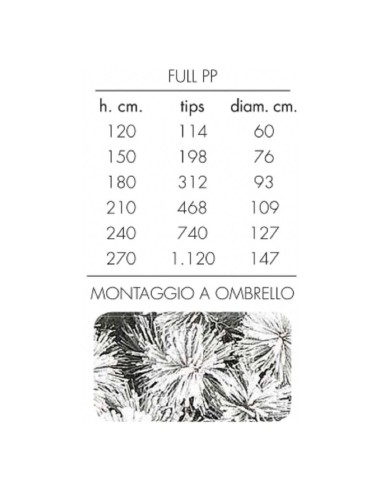 Albero di Natale "des alpes" altezza 180 cm diametro 93cm con 312 rami floccato