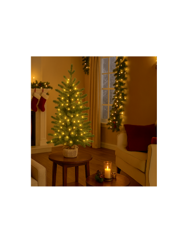 Abete Alpino di Natale Prelit H90xø53cm con base in iuta elegante e naturale