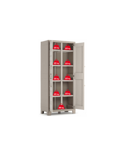 Il Keter Armadio Portascope Gulliver è la soluzione ideale per organizzare spazi esterni come giardini e balconi. Con 8 ripiani pieghevoli dalla portata massima di 15 kg ciascuno, offre flessibilità e capienza. Realizzato in resina robusta con oltre il 70% di plastica riciclata, è resistente ai raggi UV e alle intemperie. Il colore sabbia/beige si integra perfettamente in ogni ambiente esterno. Dotato di cerniere in metallo, fondo rinforzato, piedini regolabili e chiusura predisposta per lucchetto, assicura sicurezza e durata. Lo schienale antipolvere in polipropilene protegge gli oggetti custoditi. Per garantire stabilità, si consiglia il fissaggio a parete.