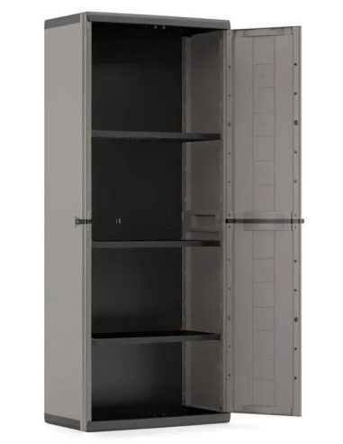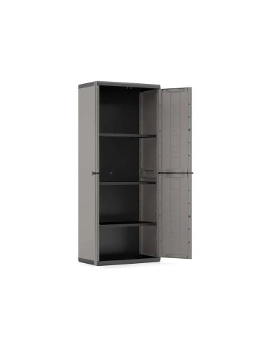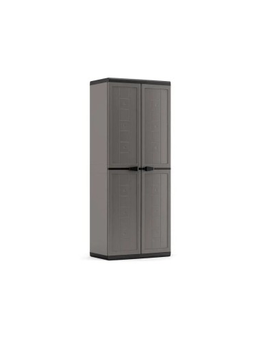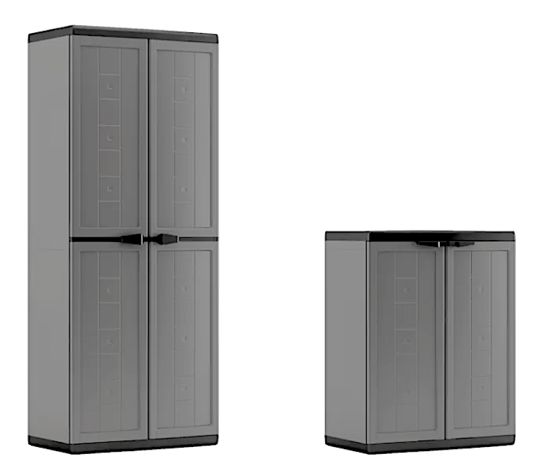 Questo set di 2 armadi Jolly Keter combina praticità e versatilità: l’armadio alto offre spazio verticale con 3 ripiani regolabili, mentre l’armadio basso completa l’insieme con soluzioni compatte, perfette per stanze, garage o giardini riparati. Realizzati in polipropilene, sono resistenti agli agenti atmosferici, leggeri e facili da montare. Le porte sono predisposte per l’applicazione di un catenaccio per maggior sicurezza (non incluso). Il design moderno in grigio scuro consente un’integrazione elegante in ambienti domestici e spazi professionali.