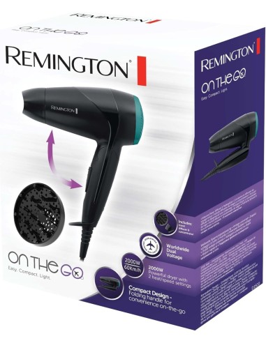 REMINGTON ASCIUGACAPELLI DA VIAGGIO ON THE GO D1500, 2000W, PIEGHEVOLE, NERO