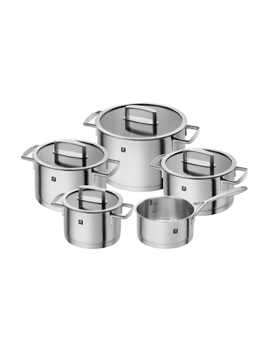 Vitality Batteria di Pentole 5 Pezzi in Acciaio Inox 18/10, Triplo Fondo, con Coperchi, Compatibile Induzione