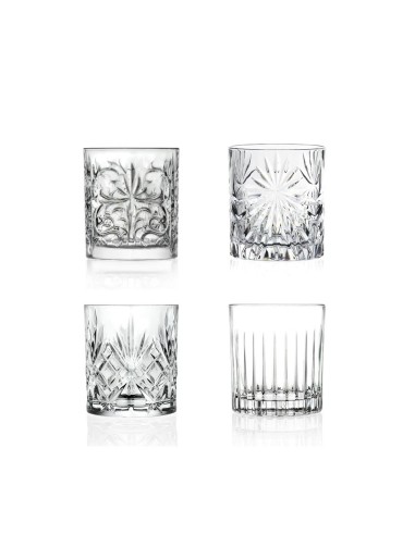Il set da 4 bicchieri DOF della collezione Mixology di RCR è pensato per gli amanti dei cocktail e dei drink miscelati con stile. Ogni bicchiere, decorato con un motivo distinto (Tattoo, Oasis, Melodia, Timeless), è realizzato in Luxion® Eco‑Crystal, un cristallo ecologico senza piombo, prodotto con forni elettrici e completamente riciclabile, che offre massima trasparenza, brillantezza e suono cristallino al tocco.