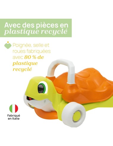 Girello e Cavalcabile 2-in-1: Chicco Walk & Ride Turtle Eco+ è un giocattolo versatile che funziona sia come girello per bambini a partire dai 9 mesi, sia come cavalcabile per i più grandi.