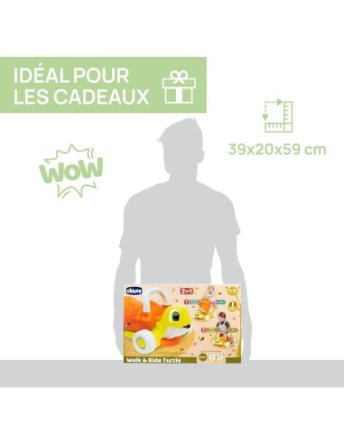 Il Chicco Walk & Ride Turtle Eco+ è un innovativo girello e cavalcabile 2-in-1, perfetto per accompagnare i primi passi del tuo bambino dai 9 mesi fino ai 36 mesi. Con un design moderno ispirato all'origami, questo giocattolo versatile permette ai bambini di sviluppare le loro capacità motorie in sicurezza. Realizzato al 75% in plastica riciclata, fa parte della linea ECO+ di Chicco, che promuove la sostenibilità ambientale. L'assemblaggio è semplice e sicuro grazie a un sistema di viti che consente di passare facilmente dalla modalità girello a quella cavalcabile. Il Walk & Ride Turtle Eco+ è interamente progettato e prodotto in Italia, e viene confezionato in un imballaggio riciclabile, per un giocattolo che è divertente e rispettoso dell'ambiente