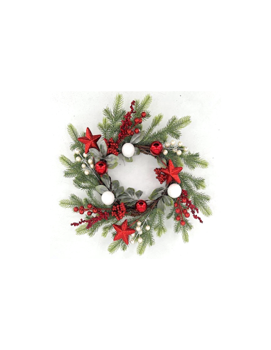 CORONA 39554 45CM AGHI E BACCHE BIANCHE/ROSSE