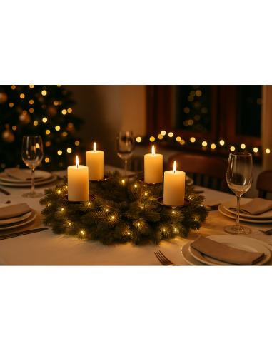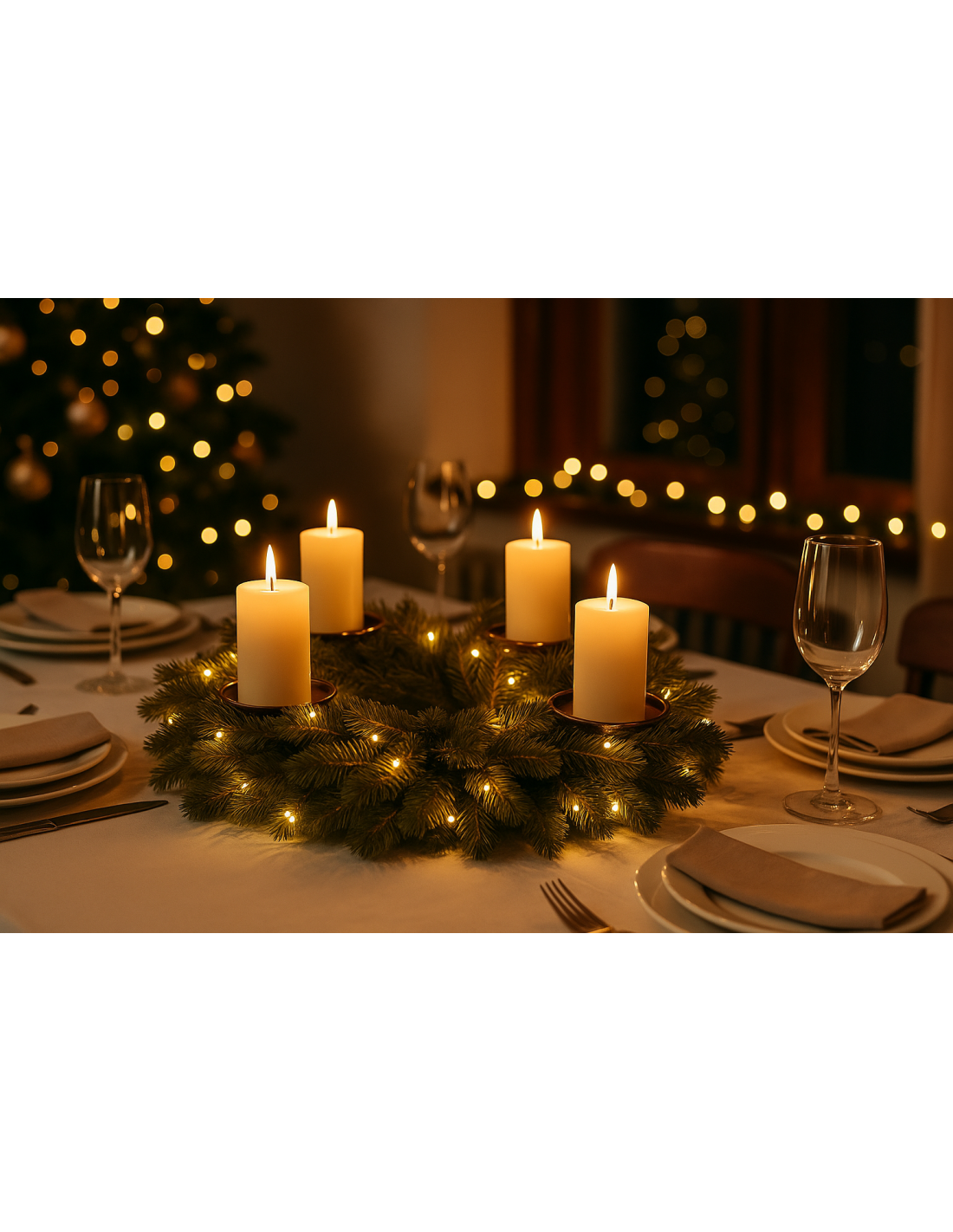 Corona di Natale 40cm con 50led e 4 portacandela, centro tavola raffinato, la magia di Natale per la tua casa