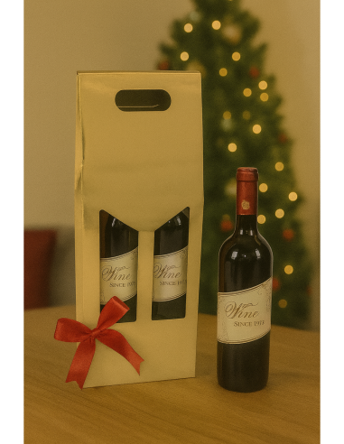 La magia di Natale per i tuoi regali prende vita con questo elegante box portabottiglia doppio, resistente e riutilizzabile, pronto a valorizzare le tue festività anno dopo anno.