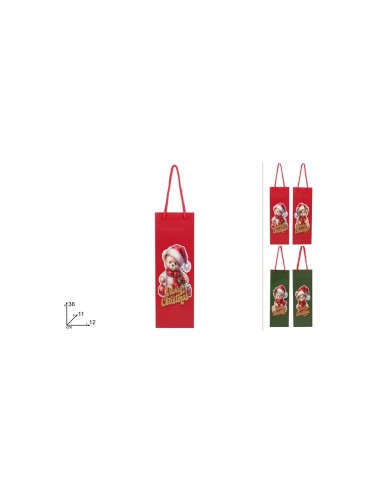 BUSTA REGALO ORSETTO NATALIZIO 36X12X11CM ASSORTITO