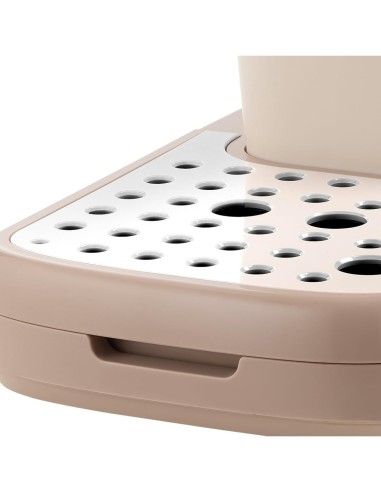 Facile da pulire e sicura, integra protezione da sovraccarichi e surriscaldamento, spegnimento automatico e piattino scaldatazze. Design raffinato in color champagne, perfetto per valorizzare la cucina con stile.
