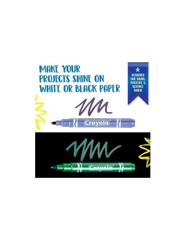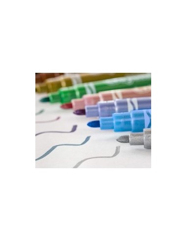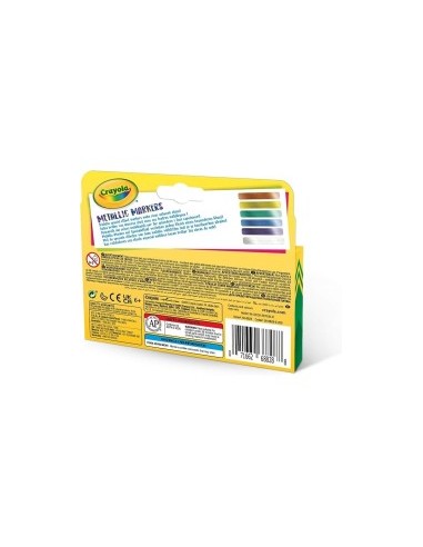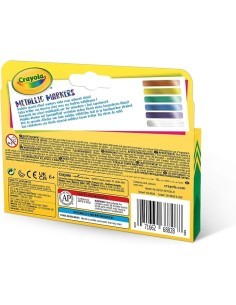 Libera la fantasia con i pennarelli metallizzati Crayola, ideali per bambini, studenti e creativi di ogni età. La confezione contiene 6 colori scintillanti – oro, argento, violetto, verde, azzurro e bronzo – perfetti per arricchire disegni, progetti scolastici, presentazioni e attività di lettering o calligrafia. I colori brillano al meglio su carta scura e cartoncini, creando effetti unici e sorprendenti. Sicuri, facili da usare e versatili su molte superfici, questi pennarelli renderanno ogni lavoro ancora più speciale.