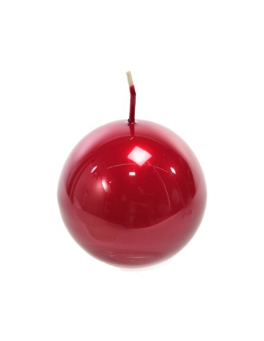 Candela di Natale a forma di sfera, diametro 8 cm, in vetro rosso lucido, perfetta per arricchire tavoli, mensole o centrotavola durante le feste.