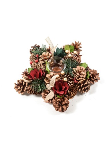 PORTACANDELA 17080 STELLA 1P 26X7CM PIGNE E FIORI