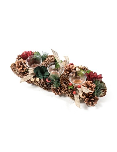 PORTACANDELA 17097 PIGNE E FIORI 3P 38X15X9CM