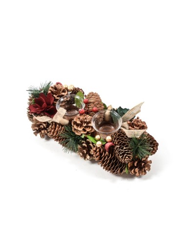 PORTACANDELA 17103 PIGNE E FIORI 2P 32X13X8CM