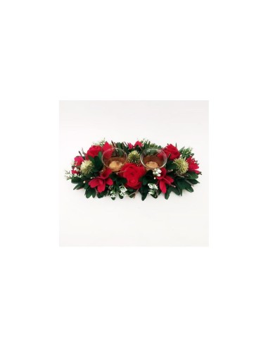 PORTACANDELA 30841 2P VELLUTO ROSSO 34X16X7CM CON FIORI