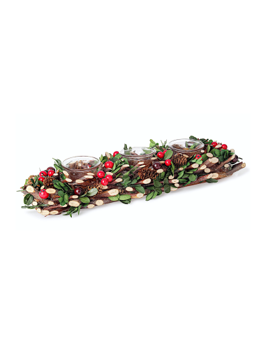 PORTACANDELA ELOISE 3P 39X13,5X7CM CON BACCHE
