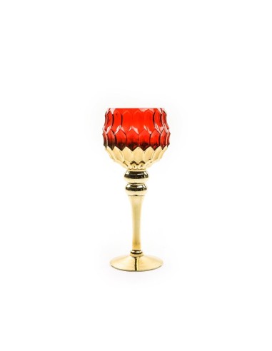 Portacandela di Natale Vetro Oro/Rosso 13x30cm, Decorazioni Natalizie, Addobbi, La magia di Natale per la casa