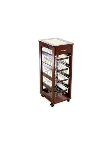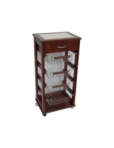 - Colore: Noce, - 1 Cassetto, - 4 cestelli in acciaio con manici in legno estraibili, - Ruote piroettanti per un facile spostamento, - Dimensioni (cm): 39 x 29 x h 82.