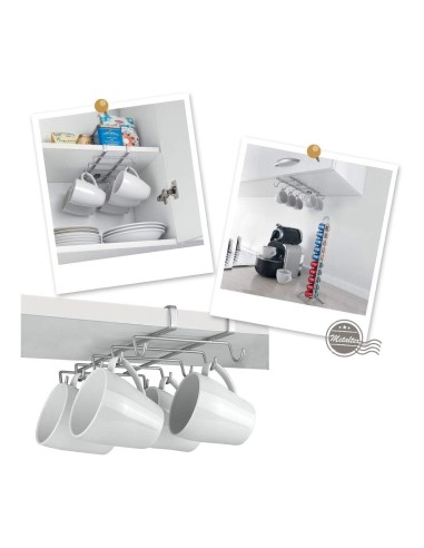 Risparmia spazio e mantieni ordine in cucina con la mensola portabicchieri Metaltex SpiderMug. Grazie al pratico sistema sottoripiano, permette di appendere fino a 10 tazze o bicchieri, sfruttando al meglio gli spazi interni dei mobili. Facile da installare senza bisogno di viti o utensili: basta far scorrere il supporto sotto la mensola e sarà subito pronto all’uso.