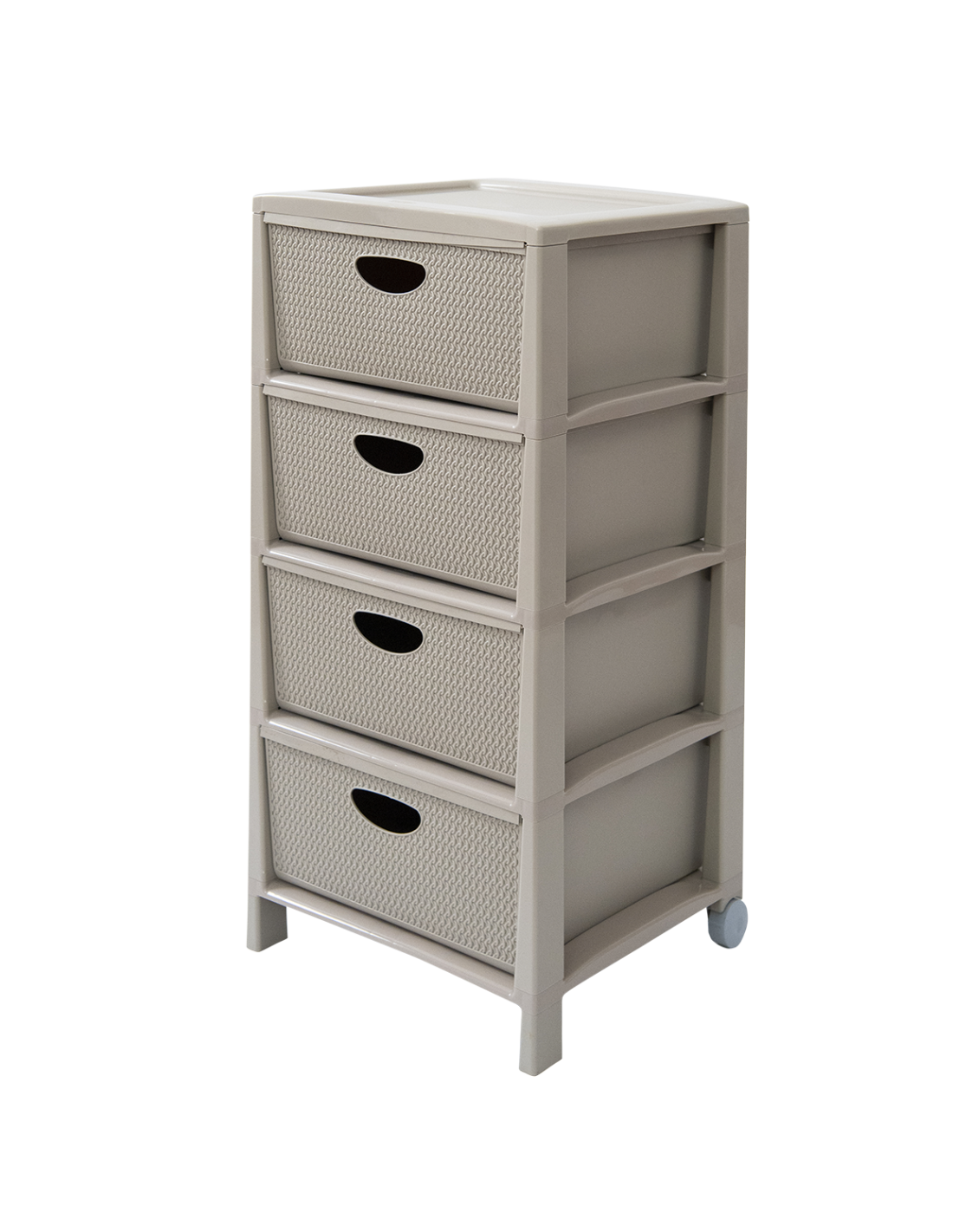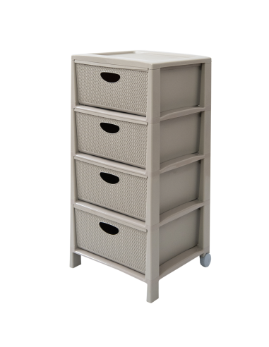 Cassettiera, Belli e Forti, 39,5x38x82 cm, 4 cassetti intreccio, bianco e tortora, cassettiera polipropilene