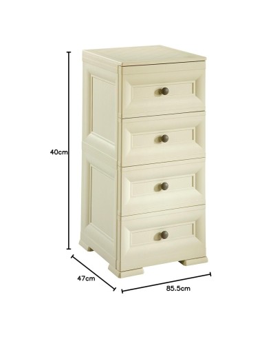 Tontarelli, cassettiera stretta, 4 cassetti piccoli, angora, 40x47x85,5 cm, mobile contenitore, organizer casa e ufficio