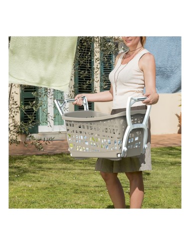 Innovativa e pratica cesta con gambe di appoggio reclinabili che aiuta a stendere e a raccogliere il bucato evitando di affaticare la schiena.Un'innovativa cesta bucato che risolve le esigenze pratiche di tutti i giorni garantendo una migliore postura quando andiamo a stendere i panni o quando stiriamo. Le pratiche gambe di appoggio reclinabili, una volta aperte, consentono un utilizzo più comodo della cesta perchè la rialzano da terra: in questo modo prendere i panni dalla cesta per posizionarli sull'asse da stiro è molto meno faticoso perchè possiamo evitare di piergarci. Ma non è tutto. Basta un semplice gesto per ruotare le gambe nella posizione desiderata..et voilà! Una volta richiuse le gambe di appoggio si trasformano in robuste maniglie per un facile trasporto della biancheria