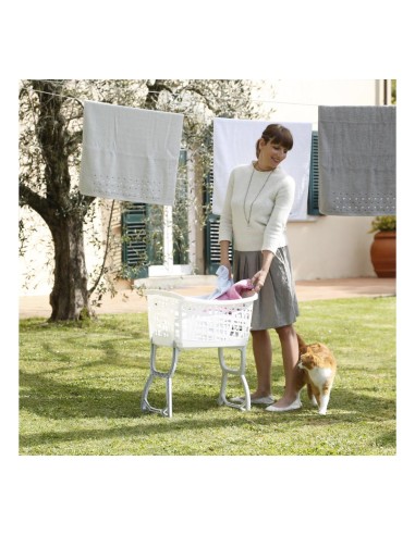 Innovativa e pratica cesta con gambe di appoggio reclinabili che aiutaa stendere e a raccogliere il bucato evitando di affaticare la schiena. Da oggi gestire il bucato è più semplice e veloce! Colori disponibili: Assortiti Dimensioni disponibili: 60,5x39,5x43h (68,5h) Capacità disponibili: 44 Lt.