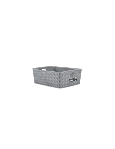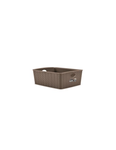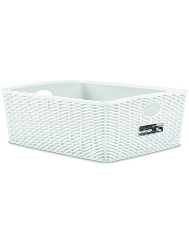 Cestino rettangolare multiuso in finitura midollino con foro maniglia. Idoneo al contatto alimentare.