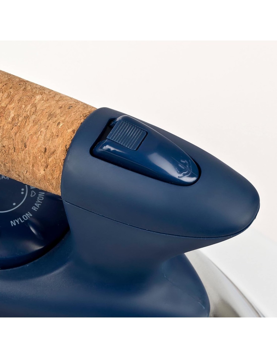 Questo ferro da stiro offre un'esperienza confortevole grazie all'impugnatura ergonomica in sughero e alla scorrevole piastra in alluminio, che assicura una distribuzione uniforme del calore.