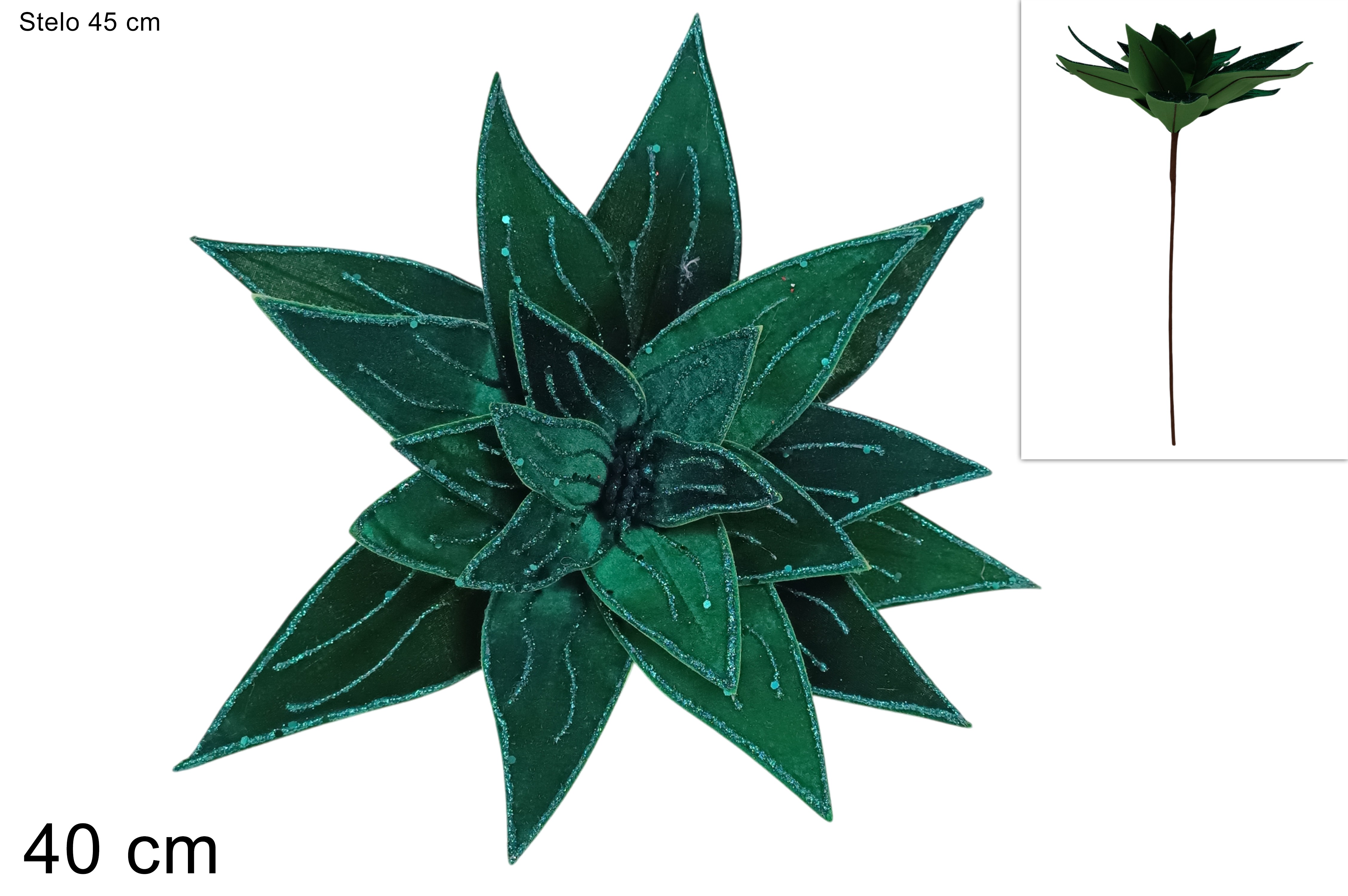 STELO 40CM FIORE VELLUTO CON GLITTER VERDE