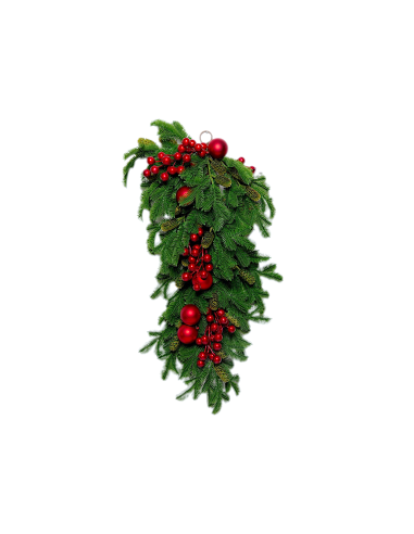 Realizzato in PVC di alta qualità, unisce rametti di pino realistici, bacche rosse brillanti e sfere decorative che aggiungono luce e calore a ogni composizione.