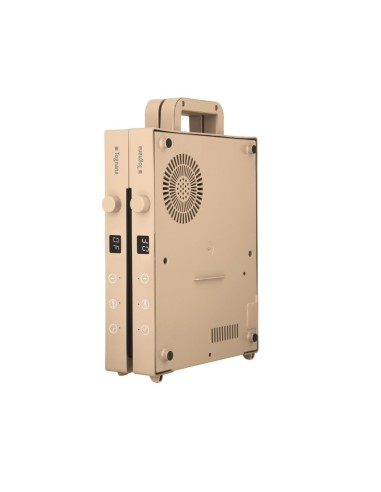 La Piastra a Induzione Doppia Portatile Iridea Champagne unisce potenza, design e praticità in un unico elettrodomestico. Le due piastre in vetro temperato da 255x216 mm garantiscono una distribuzione uniforme del calore, consentendo di cucinare più pietanze contemporaneamente.