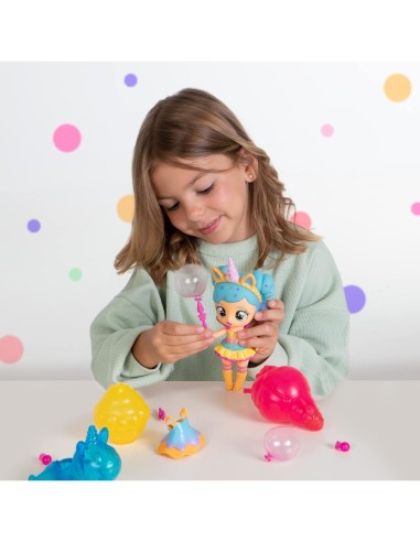 Le Bubiloons Bubigirls sono bambole da collezione uniche che offrono un'esperienza di gioco magica e interattiva. Ogni Bubigirl è confezionata in una scatola a forma di negozio, dove inizia la festa! Con un entusiasmante unboxing, basta aprire la porta e spostare le stelle filanti per scoprire la tua Bubigirl. La bambola è dotata di una cannuccia per gonfiare palloncini: basta inserirla nella sua bocca e premere la testa per creare divertenti palloncini colorati. Con 12 accessori, tra cui un body e due vestiti, puoi vestire e personalizzare la tua Bubigirl in tanti modi diversi. Sono disponibili 6 Bubigirls da collezionare, ideali per scambiarle con gli amici e inventare nuove storie. Perfette per stimolare l'immaginazione e la creatività dei bambini dai 5 anni in su.