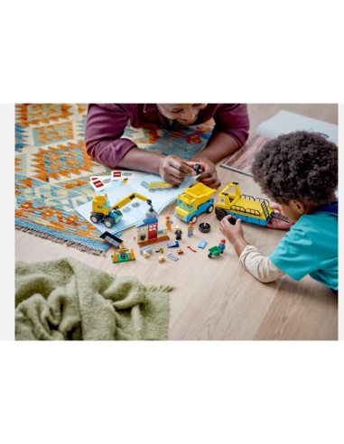I bambini imparano a costruire e a giocare con il playset del Camion da cantiere e gru con palla da demolizione LEGO® City (60391). Appositamente progettato per i bambini dai 4 anni in su, questo set da costruzione giocattolo contiene 3 veicoli costruibili, una casa abbandonata con funzionalità di abbattimento, 3 minifigure di operai e divertenti accessori per il gioco di fantasia.