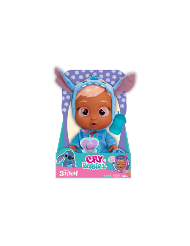 - Bambola Cry Babies Disney Stitch con iconico pigiama blu e accessori come ciuccio e biberon.