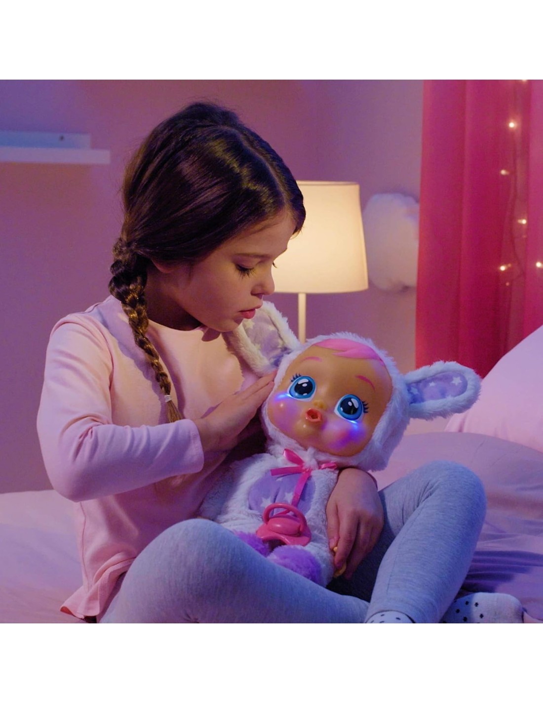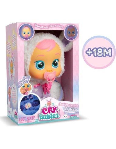 Cry Babies Good Night Coney, Bambola Morbida Interattiva con Luce Notturna e Melodie Rilassanti, Giocattolo per Bambini +2 Anni