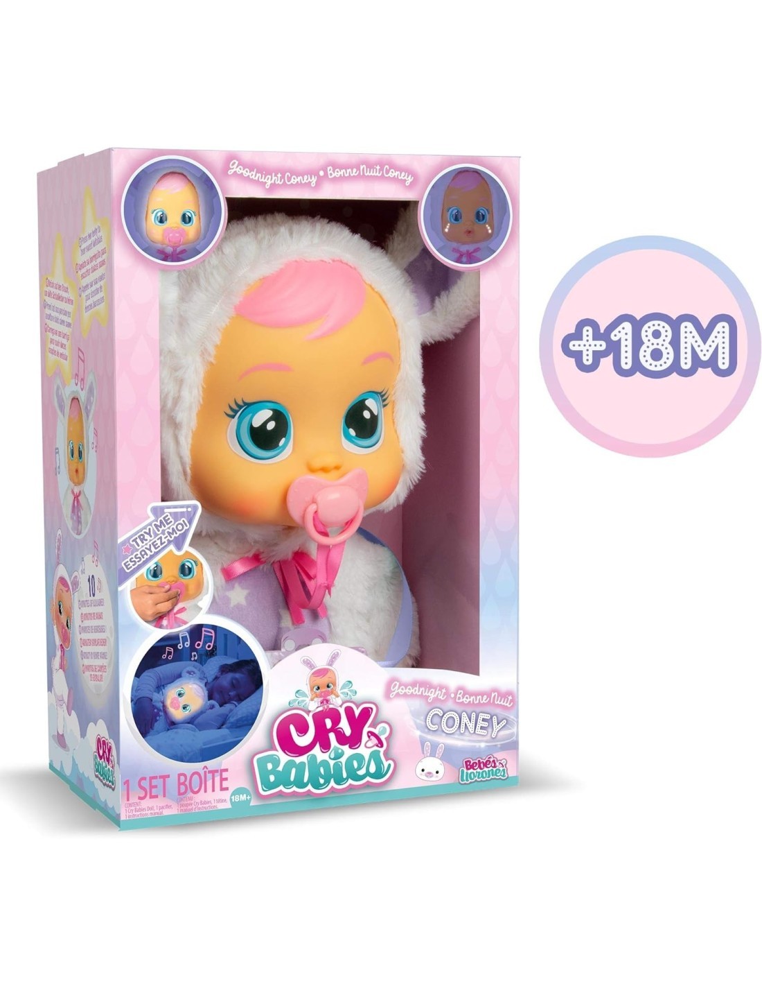- Bambola Morbida Interattiva: Cry Babies Good Night Coney è progettata per essere morbida e accogliente.