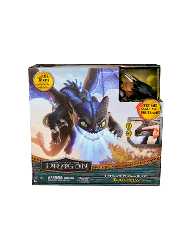 Drago Sputafuoco da 38 cm è una spettacolare action figure ispirata alla saga How to Train Your Dragon (DreamWorks). Con un’apertura alare imponente, luci al plasma blu e suoni epici, questo drago interattivo è pronto a diventare protagonista di epiche battaglie. Basta premere il pulsante sul dorso per caricare l'attacco, poi di nuovo per attivare effetti luminosi e il morso sonoro.