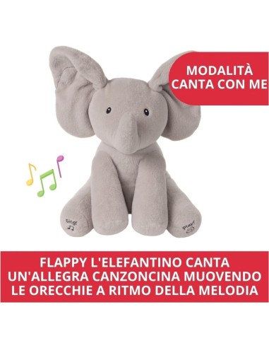 GUND Flappy Elefantino Interattivo Peluche Canta e Parla in Italiano, Muove le Orecchie 30.5 cm,10 Mesi+, Spin Master