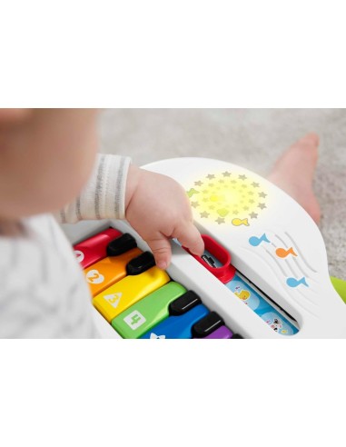 Il Pianoforte di Cagnolino Ridi & Impara di Fisher-Price è un giocattolo portatile pensato per neonati e bambini dai 6 ai 36 mesi. Premendo gli 8 tasti numerati, il bambino attiva luci, suoni, canzoni educative e versi di animali. Grazie alla levetta, è possibile alternare tra note di pianoforte reali, versi dell’anatra o della mucca e contenuti educativi. Il pulsante a forma di globo permette di selezionare la lingua tra italiano, inglese, spagnolo o portoghese. Con la pratica maniglia, il piccolo potrà portarlo ovunque, stimolando la coordinazione, l’apprendimento dei suoni e la creatività.