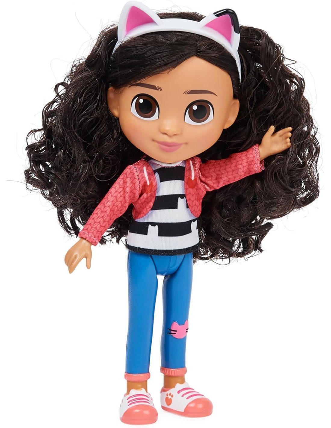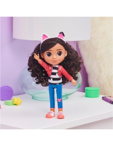 Porta a casa la magia di Gabby's Dollhouse con la bambola di Gabby, perfettamente ispirata alla protagonista della famosa serie TV. Gabby indossa il suo iconico outfit visto nella serie e ha capelli morbidi e pettinabili, pronti per essere acconciati. Le sue immancabili orecchie da gatto sono rimovibili, permettendo ai bambini di ricreare le avventure preferite della serie. Progettata per bambini dai 3 anni in su, questa bambola è un regalo ideale per tutti i piccoli fan di Gabby's Dollhouse.