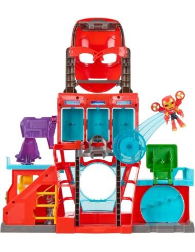 Il playset offre un’esperienza interattiva ricca di attività: finestra che crolla, parete demolibile, ascensore armatura che si alza, slide-trap e braccio volante. Include anche una maschera gioco rimovibile per far vestire i panni di Iron Man ai bambini.