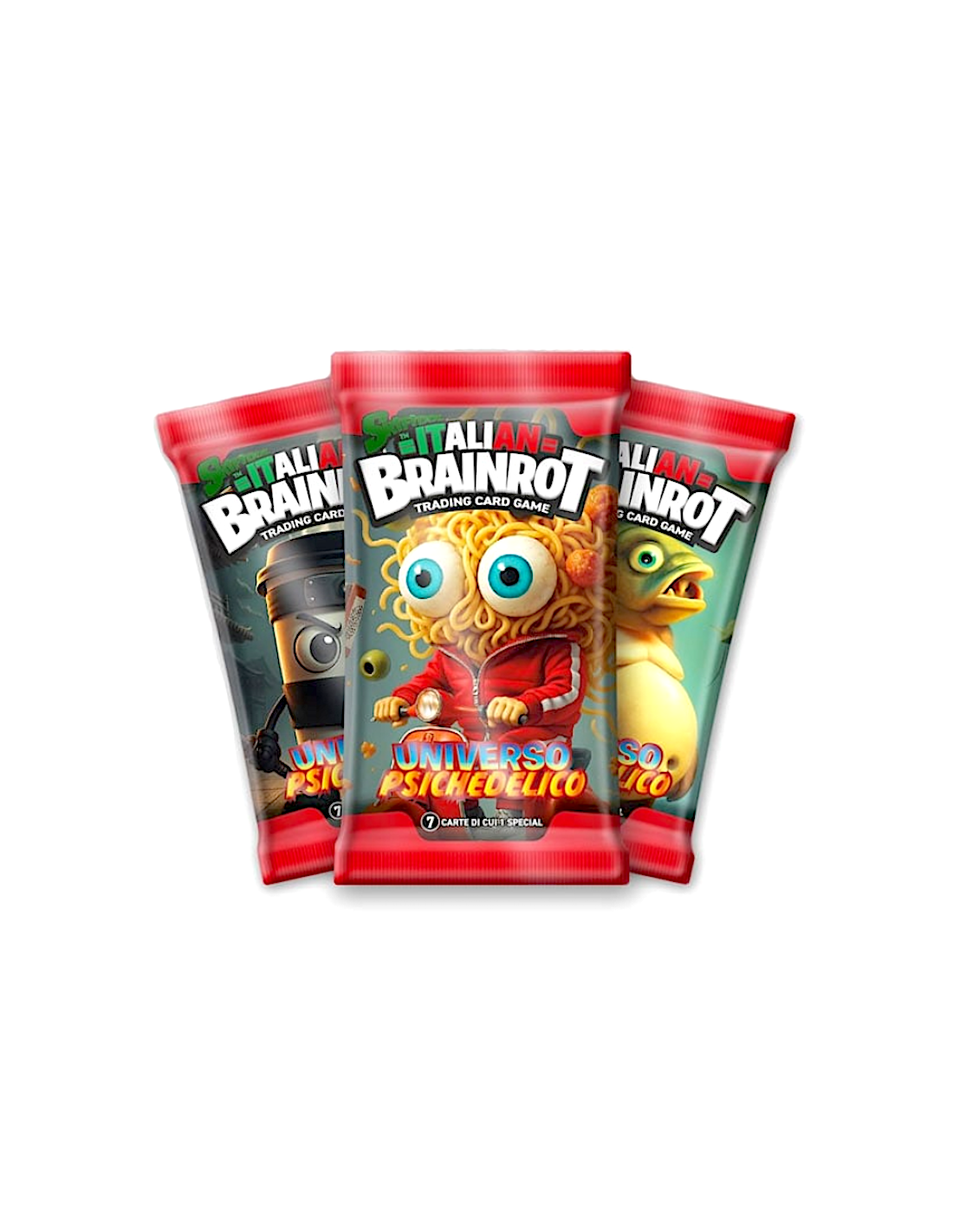 Scopri la busta di carte collezionabili Italian Brainrot - Universo Psichedelico, un prodotto per veri appassionati di carte da gioco e memorabilia. Ogni busta contiene carte a tema psichedelico con grafiche originali e colorate, ideali per collezionare, scambiare o giocare con amici.