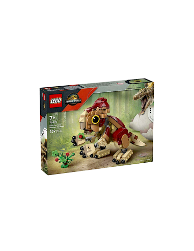 Set LEGO Jurassic World con cucciolo di dinosauro Aquilops articolato.