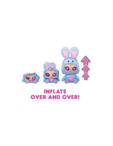 Ma non è tutto! Stacca il velcro dalla parte posteriore del costume per rivelare la dolce Aya Cherry. Con nuovi abiti e accessori alla moda, come la gonna, il cappello con le orecchie da coniglietto, le scarpe eleganti e un simpatico papillon, Aya è pronta per ogni avventura. Inoltre, puoi divertirti a gonfiare e sgonfiare il costume, creando due amici con cui giocare.