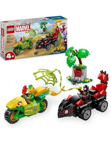 Il LEGO Spidey e i Suoi Fantastici Amici – Inseguimento sui Dino-Veicoli di Spin ed Electro porta l’azione della serie Marvel direttamente nelle mani dei bambini. Questo set colorato e divertente include i Dino-Veicoli, ovvero una macchina e una moto giocattolo con dettagli ispirati ai dinosauri, pronti per inseguimenti mozzafiato.