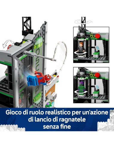- Include minifigure esclusive di Spider-Man, Green Goblin, Doc Ock e altri personaggi iconici della saga