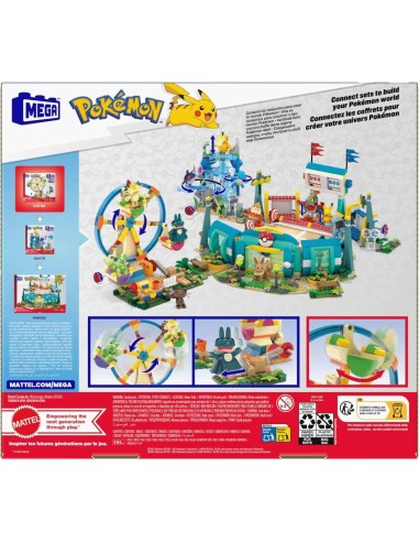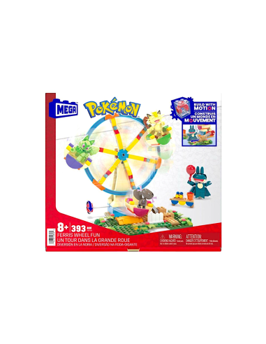 Vivi la magia del divertimento con il set Mega Pokémon HXF80 – Ruota Panoramica! Un coloratissimo parco giochi da costruire, con una ruota panoramica funzionante che farà girare Pikachu e Pancham in un giro emozionante e divertente.
